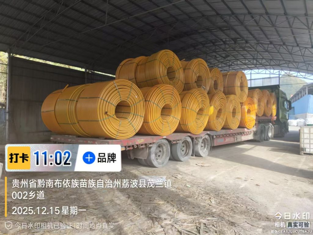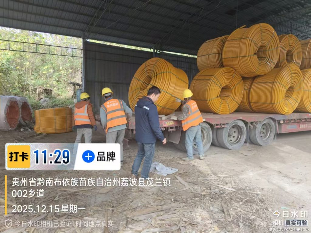 【15 декабря 2025 г., Либо】 Сегодня ООО «Гуйчжоу Ясу Гуанье» (Guizhou Yasu Pipe Industry Co., Ltd.) вновь продемонстрировало блестящие результаты! Грузовой автомобиль, полностью загруженный высококачественными оранжевыми кремниевыми трубками (Si-core), успешно прибыл на строительную площадку проекта в поселке Маолань уезда Либо. Это не только пример эффективной логистики, но и очередное свидетельство глубокого присутствия компании на рынке Гуйчжоу и её вклада в развитие инфраструктуры провинции.
